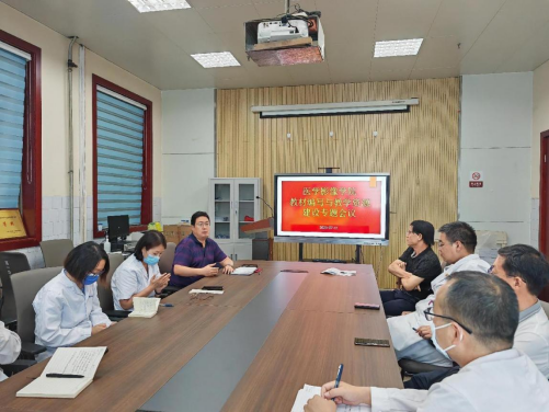 为加强我院教学资源建设,提升课程质量,推进专业教材编写工作,7月11日下午,我院在影像楼三楼会议室召开教材编写与教学资源建设专题会议。党总支书记、院长赵俊强,副院长韩东明,各在院科室主任、副主任出席会议。会议由赵俊强主持。