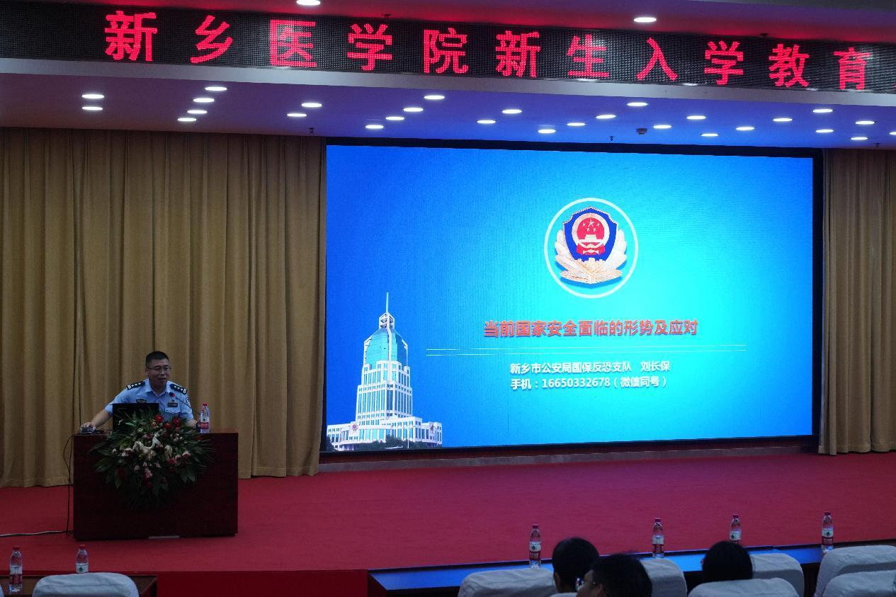 9月12日晚,全体新生在第三教学楼第一报告厅参加新生入学安全教育讲座。新乡市公安局国保反恐支队政委刘长保作为主讲人,长期在公安基层一线工作,具有深厚的理论功底和丰富的实践经验,是市公安局特聘兼职教官、河南省反邪教专家库成员。刘长保以总体国家安全观为指导,分享了当前我国国家安全各方面面临的最新形势及应对,对同学们进行了国家安全和网络安全教育。通过这次讲座,新生们对国家安全有了更新更深入的理解,明白了维护国家安全的重要性,树立了安全责任意识。