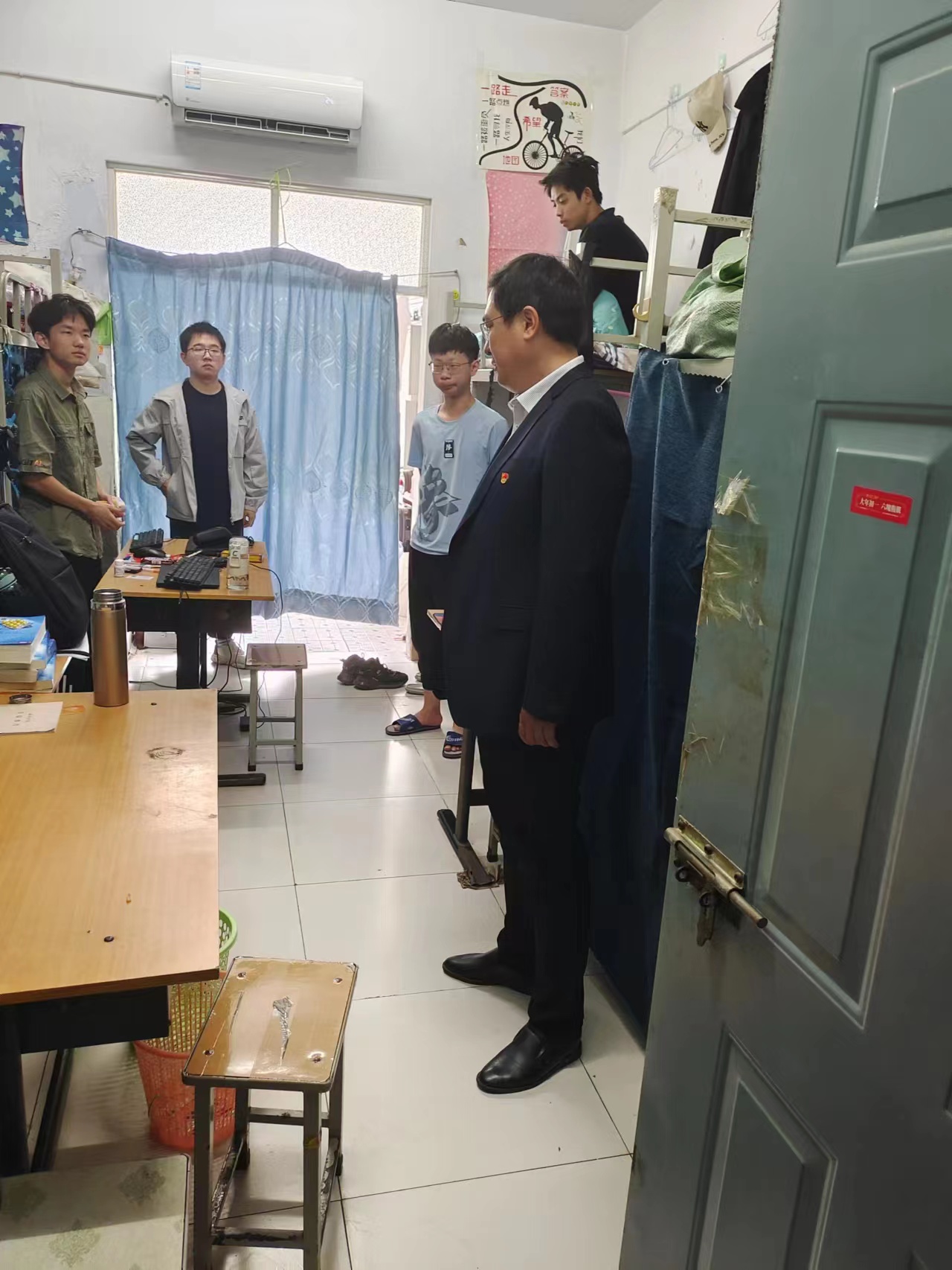 10月8日下午,院党总支书记、院长赵俊强深入卫辉校区,挨个走访学生宿舍,认真询问学生在学习、生活等方面的情况,耐心倾听学生反映的问题和建议并一一记录。走访过程中,赵俊强亲切提醒学生在宿舍注意用电、消防和人身财产安全,鼓励学生走出去多进行户外活动,叮嘱学生遇到问题和困难及时向辅导员反映。