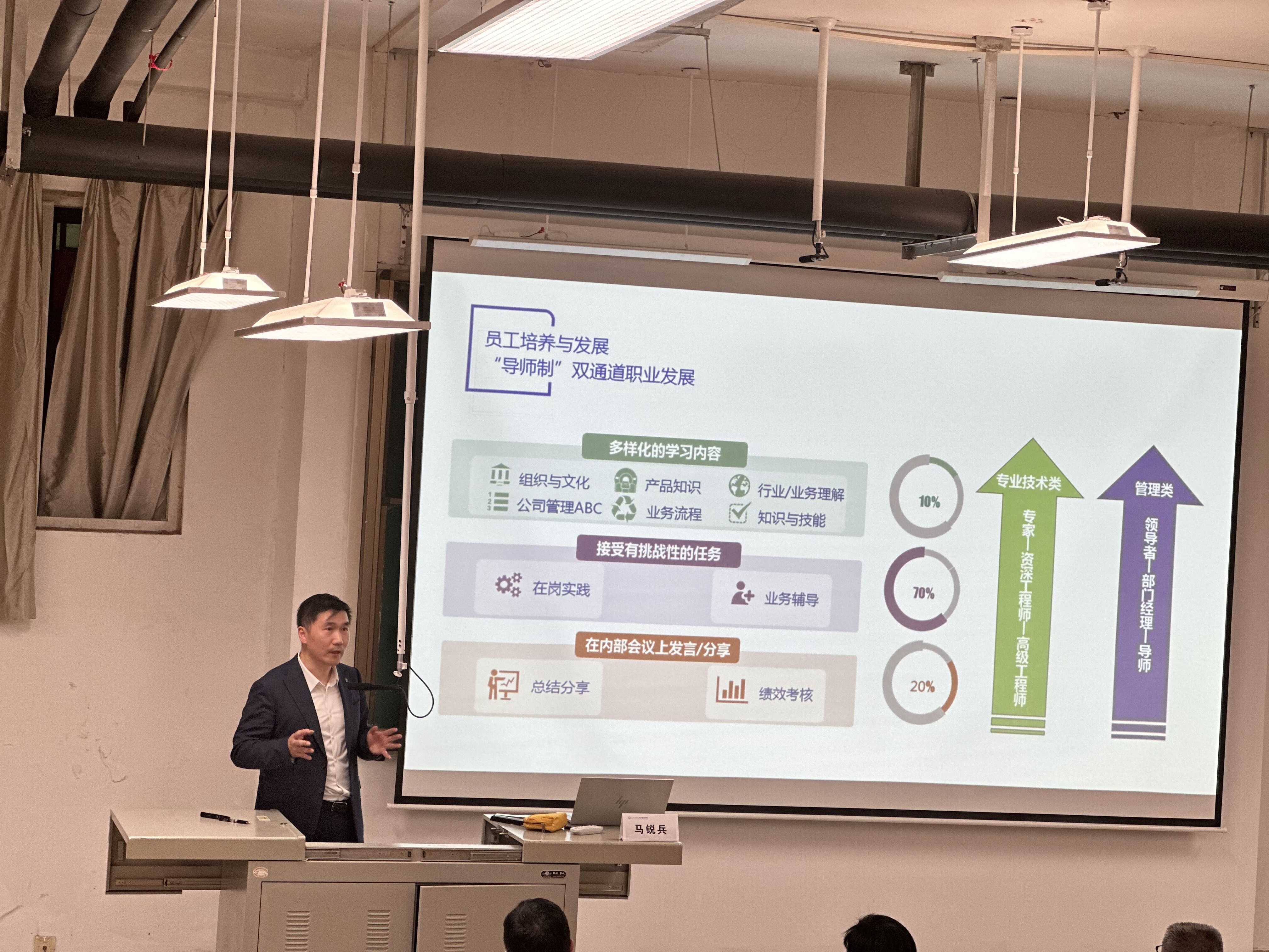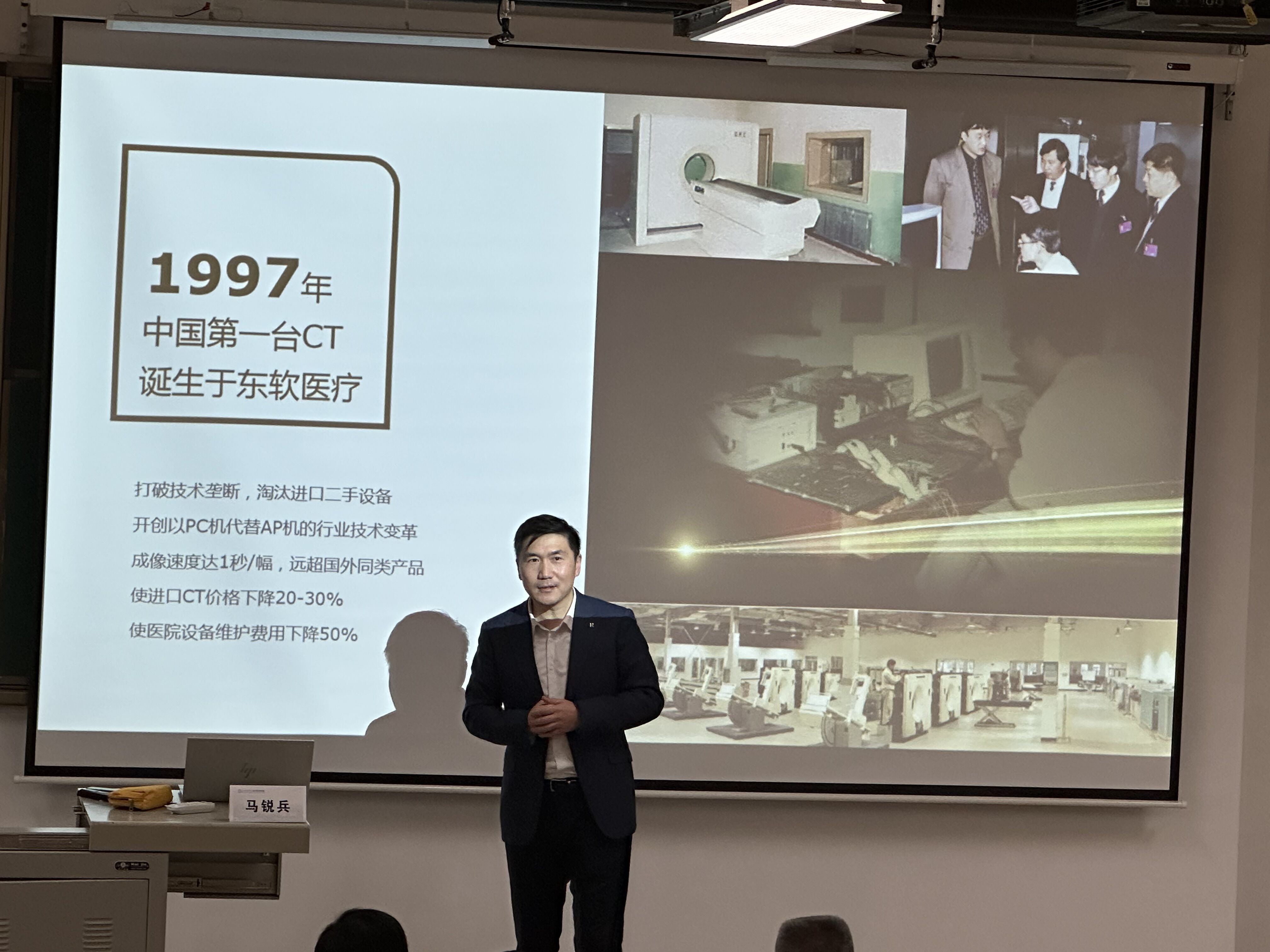 会上,马锐兵详细介绍了东软医疗的发展历程和业务领域,展示了公司的最新医学影像技术和产品应用,使同学们对东软医疗的技术实力和解决方案有更加深入的了解。他特别强调了公司在医学影像领域的领先地位和专业实力,还分享了公司在人才培养、职业发展和福利待遇等方面的具体方案和优势,以激发同学们的兴趣和求职热情。