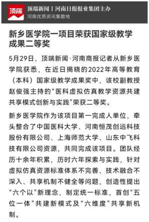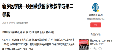 近日,《人民日报客户端》《河南日报客户端》《顶端新闻》《河南商报新乡新闻》等多家媒体持续聚焦报道我院院长赵俊强团队荣获国家级教学成果二等奖,引发广泛关注。