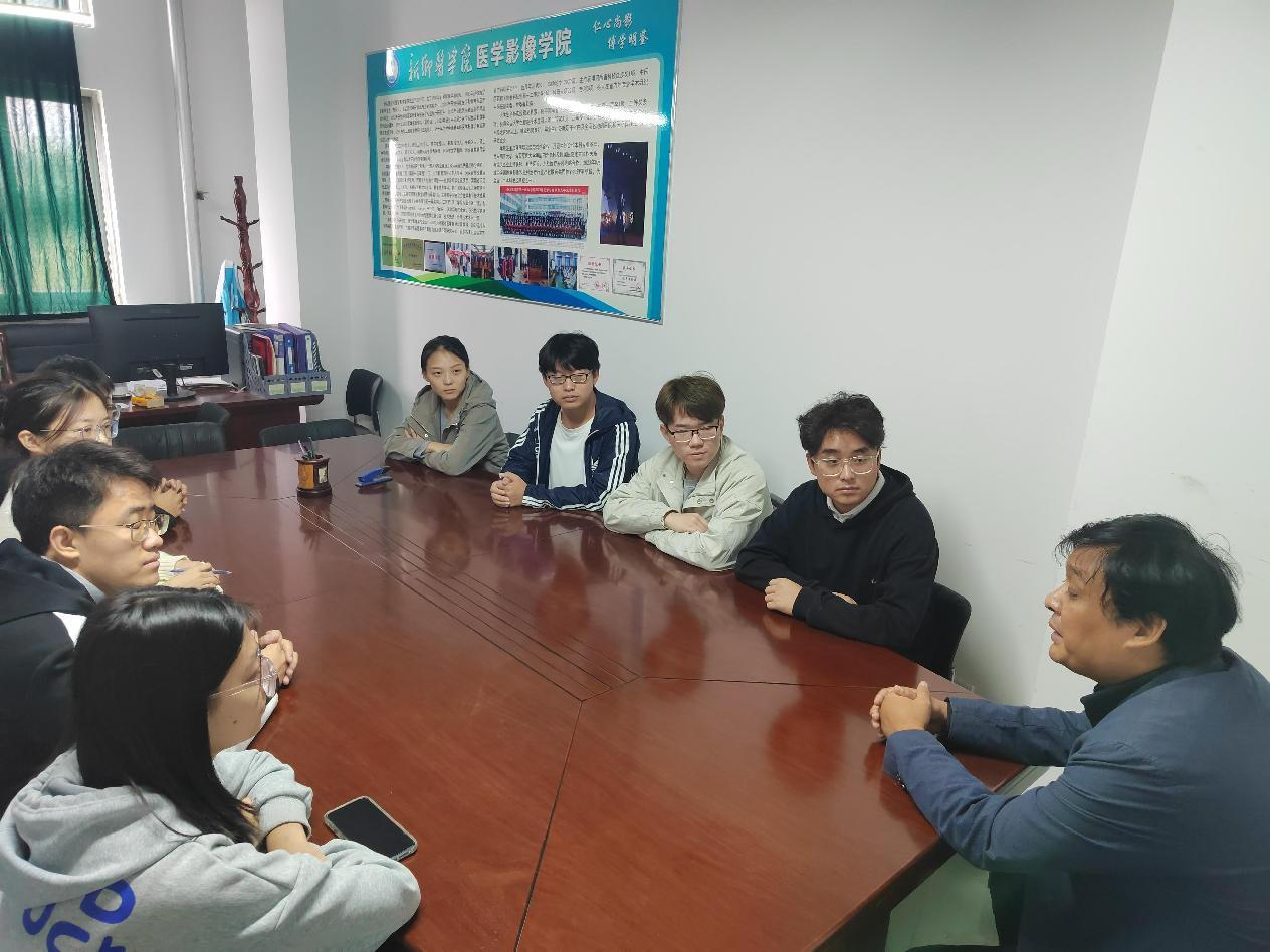 10月19日上午,我校2002级优秀校友、医学影像学院校友会副会长、华中科技大学附属同济医院超声影像科主任、博士生导师崔新伍教授与学生代表们在博济楼四楼院长办公室进行座谈。院党总支书记、院长赵俊强出席,8名学生代表参加座谈。