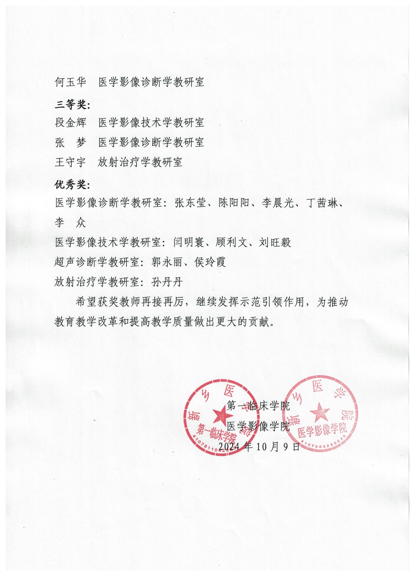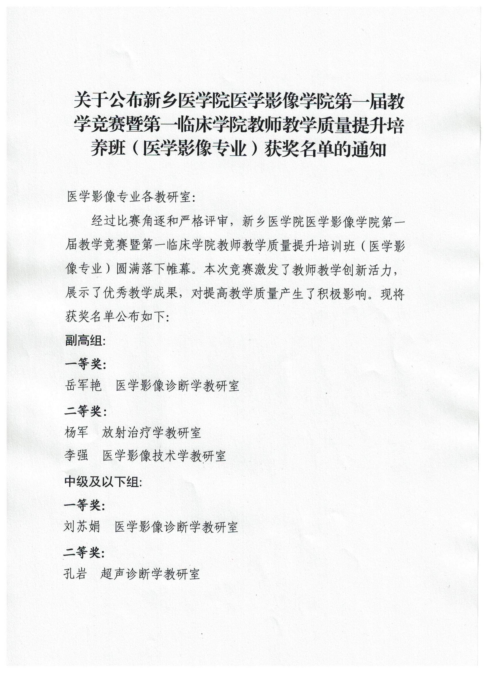 关于公布华亿在线手机版(大中国区)医学影像学院第一届教学竞赛暨第一临床学院教师教学质量提升培养班(医学影像专业)获奖名单的通知